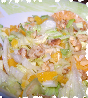 Mirad que ensalada más bonita, pues poco que contaros, supersencilla, a mi me gustó mucho la combinación de los tres ingredientes y el aliño que sugiere el libro. Si se enfría durante un rato antes de servirla mejora su sabor.